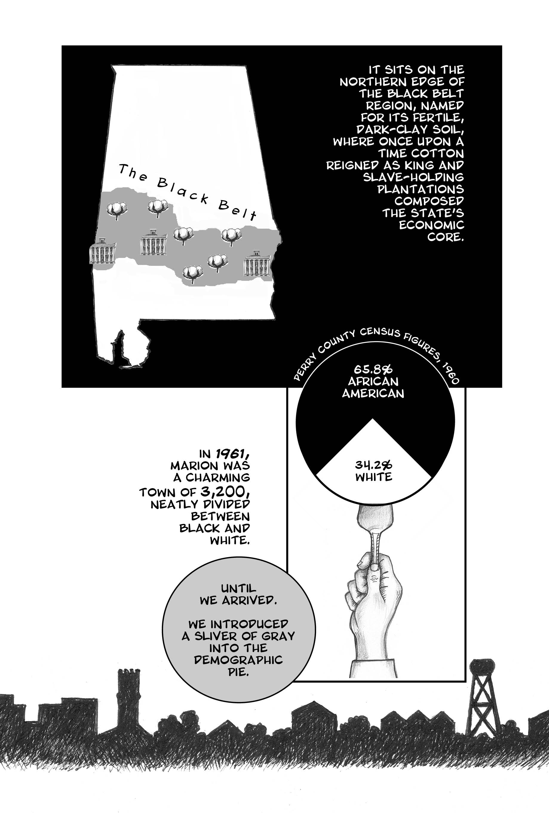 How big of a role did this cultural setting, with its legacy of racism, play in making me who I am? That was one of my biggest questions, and eventually, my outsider status and my awakening to racial inequity formed the narrative core of my graphic memoir, Darkroom: A Memoir in Black and White (The University of Alabama Press, 2012).