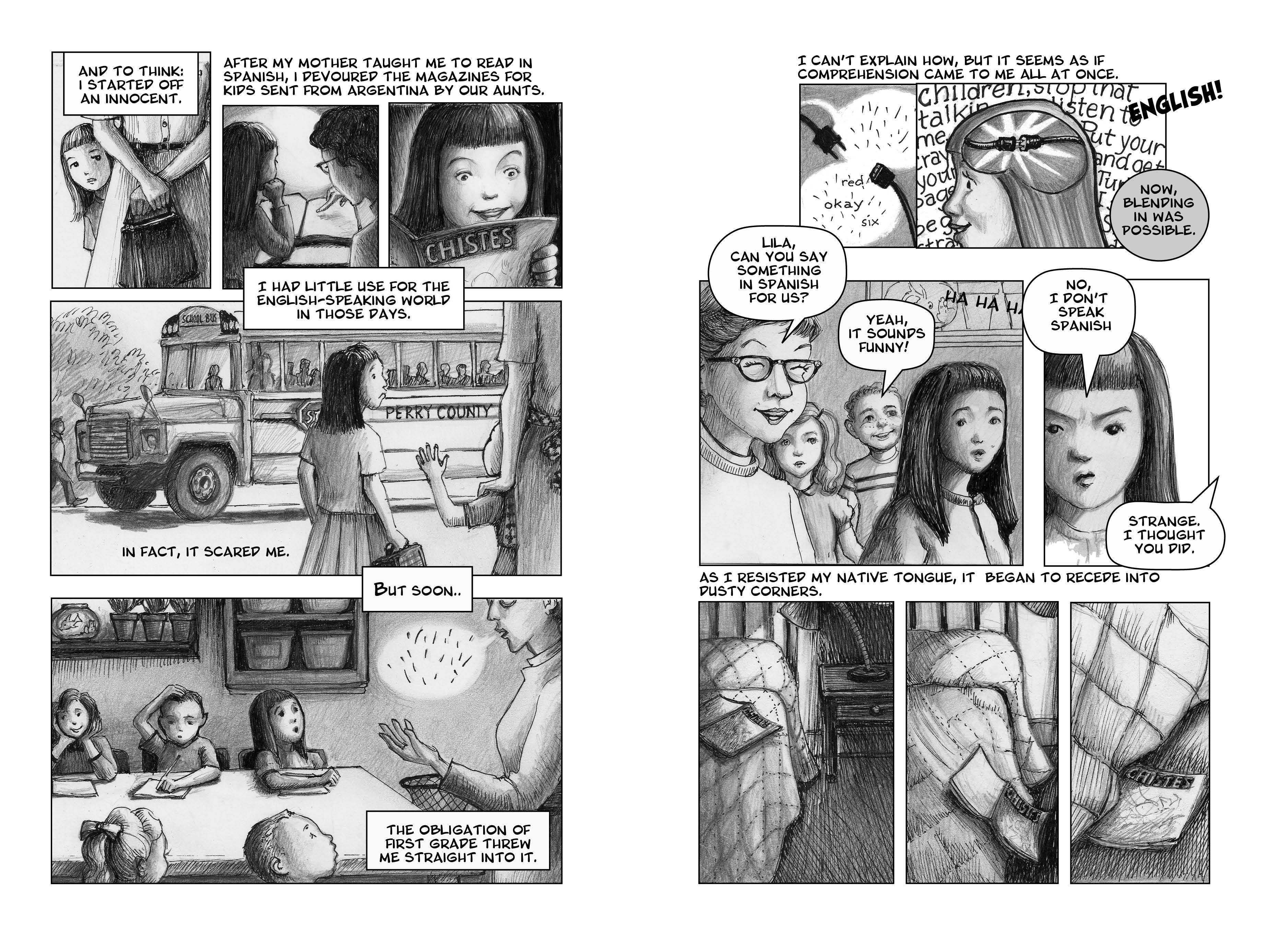Lila Quintero Weaver is the author-illustrator of Darkroom: A Memoir in Black and White. She’s working on a second book, a middle-grade novel. If Lila’s name looks vaguely familiar, it may be because she’s a regular co-blogger on Latin@s in Kid Lit. You can find her on Twitter, Facebook, and at her official author site.