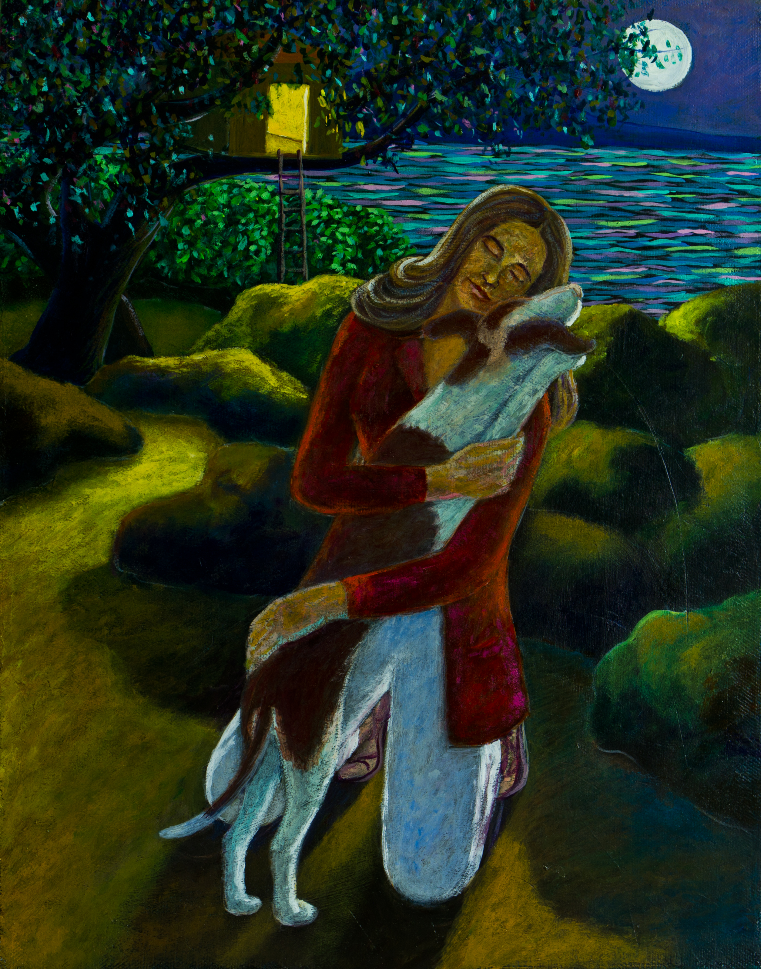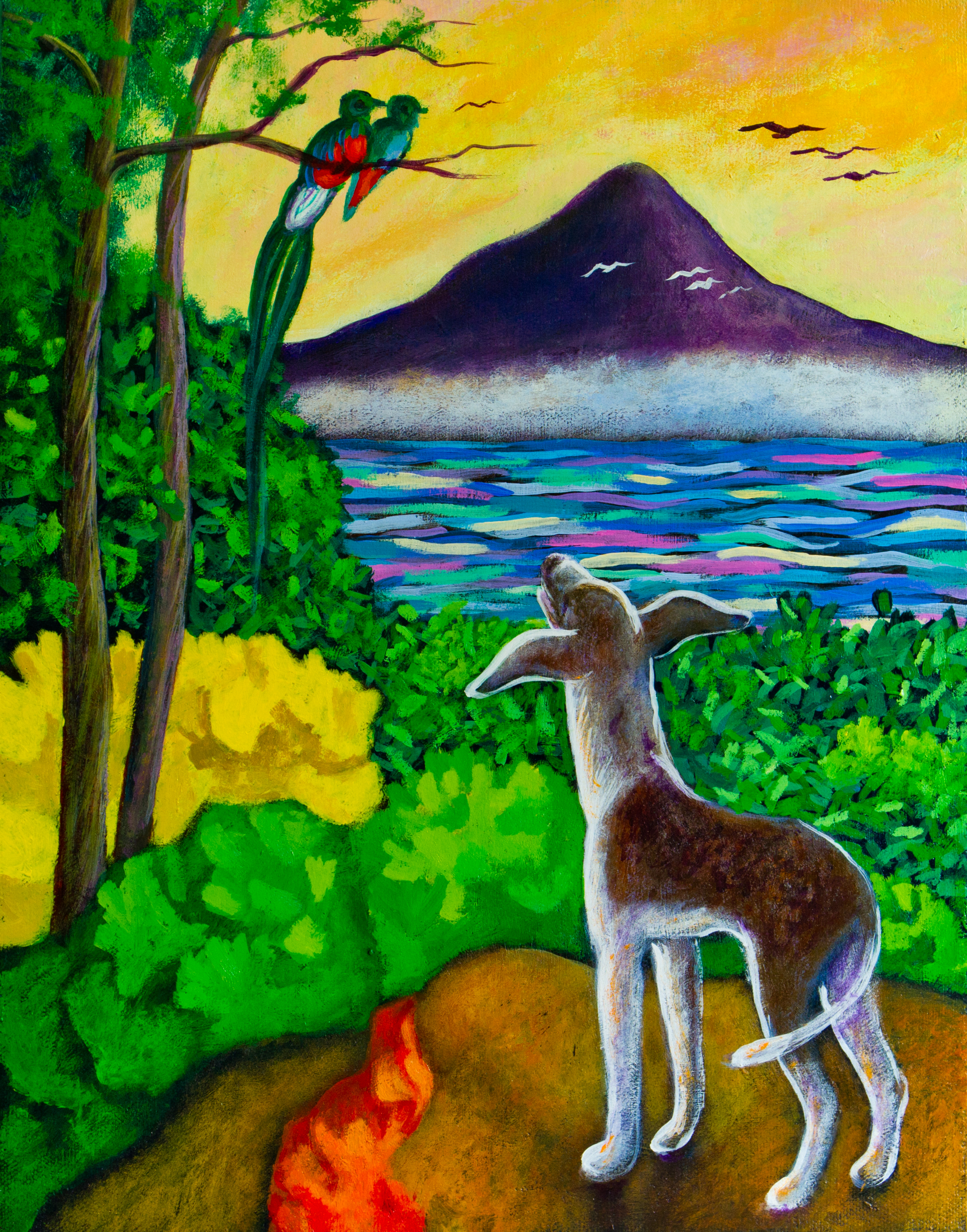 One day, I was preparing a meal in the community kitchen when a tiny, frantic puppy ran in and looked at me with desperation. She had one bright blue eye and one brown eye. After I instinctively gave her a tiny piece of bread, this little puppy visited me daily. She had mange, a belly full of worms, layers of ticks in her ears, and malformed legs which made it difficult for her to walk. I took care of all of these problems, one by one. I wrapped half an ace bandage around each of her legs so that she could walk without her legs buckling, and fed her eggshells to strengthen her bones. Over time, she healed and followed me everywhere I went. Soon, this Guatemalan street dog had a name: Doley. This was the beginning of our fourteen-year friendship as best friends and travel companions.TenderHowling