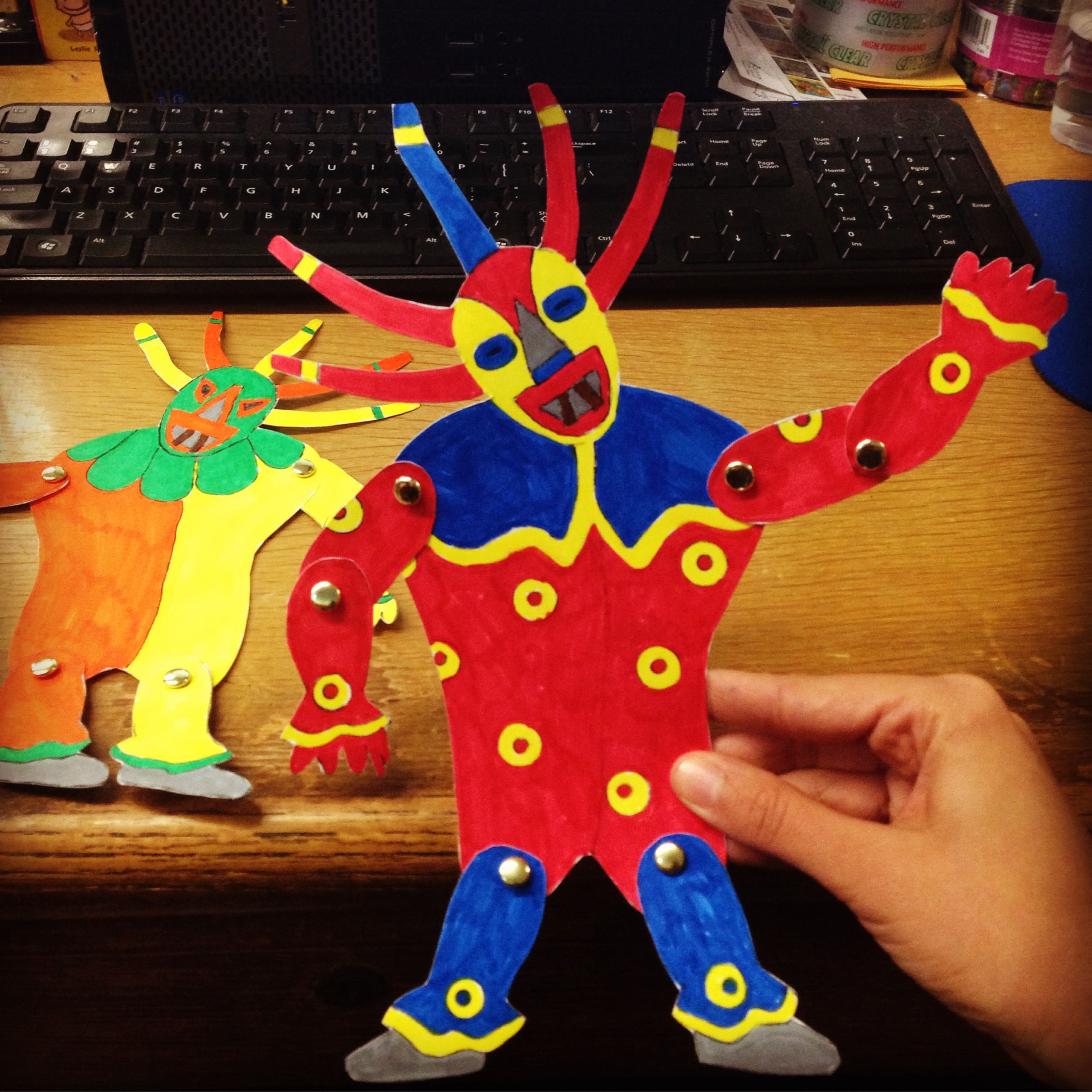Vejigantes puppets I created for a library program. I explained to the children the meaning of vejigantes and how I grew up seeing them almost everywhere back in Puerto Rico.