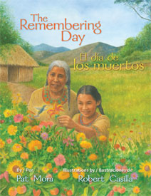 The Remembering Day/ El Día de los Muertos by Pat Mora and Robert Casilla. This is a beautiful story about remembering our ancestors and their customs. Mora creates a loving relationship between a granddaughter and her grandmother that grows stronger as they practice their indigenous traditions together. For the grandmother, remembering is a significant aspect of everyday life but as the “leaves turn golden and fall from the trees” remembering becomes a celebration of those that have passed. After grandmother’s death it becomes the granddaughter’s responsibility to remember and honor her grandmother. Mora and Casilla’s story emphasizes that El Día de los Muertos is more about remembering than it is about calaveras and flowers. Here’s a review by La Bloga.
