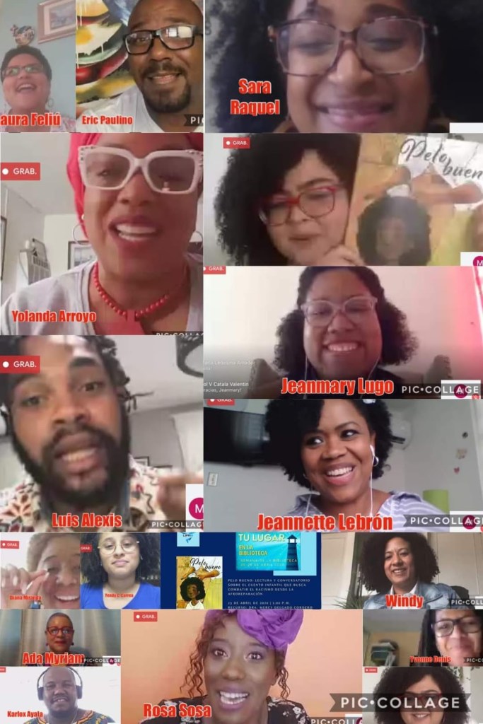 Un ejemplo de una actividad es la realizada por la Biblioteca de la Universidad de Puerto Rico en Bayamón el 23 de abril de 2020: “Pelo Bueno: Lectura y conversatorio sobre el cuento infantil que busca combatir el racismo desde la afroreparación”. En la misma, celebrada durante la Semana de la Biblioteca, que este año su lema era Encuentra tu lugar, se leyó en voz alta el cuento y luego se dio paso a un conversatorio con 15 afrorizados. Un diálogo desde el corazón sobre lo que les evocó la lectura del cuento Pelo bueno desde su experiencia personal y desde sus diversas trincheras como educadores, bibliotecarios, profesores, estilistas de pelo rizado, influencers del movimiento afropuertorriqueño, chef y artistas. Un cuento infantil desde la perspectiva de 15 adultos emocionados por los recuerdos que les evocaba escuchar el relato. Risas y lágrimas fueron testigos de un hermoso evento de amor y afroreparación. Dando lugar al lema de Encuentra tu lugar que es lo que busca el cuento infantil, ofrecernos un lugar común para vernos y encontrarnos, ir sanando.