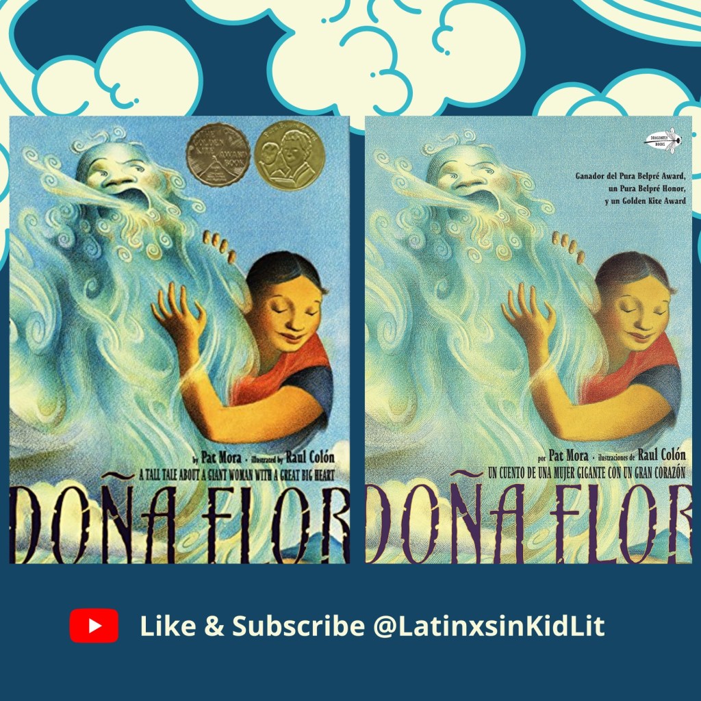 We will be marking the award’s 25th anniversary in different ways on the blog. Today, Dr. Sonia Rodriguez and Dora M. Guzmán talk about Doña Flor: A Tall Tale About a Giant Woman with a Great Big Heart, written by Pat Mora and illustrated by Raúl Colón. The book won the 2006 Pura Belpré Illustration Award. You can find our book talks on our new YouTube channel!