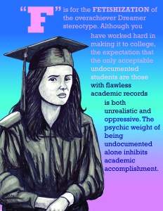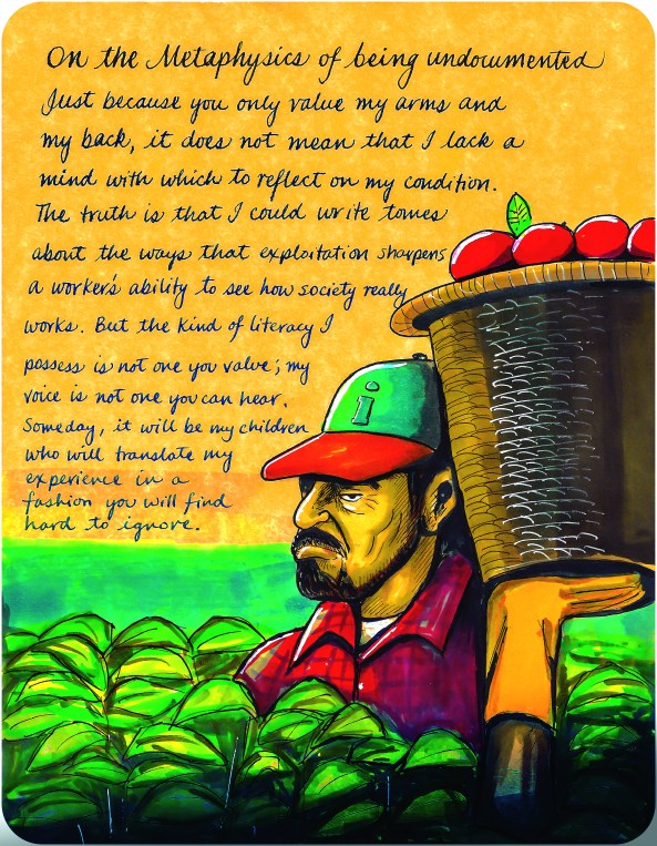 The creation of the DACA policy inspired me to return to the questions I had about what being undocumented meant in the United States. But, instead of writing more essays about this issue, I decided to draw cartoons instead. It all happened because of that Summer Bridge class I was teaching when the undocumented student movement exploded across the United States. Though I was excited about doing a lecture about the undocumented student movement, my students had expressed a frustration with the amount of work that I had already assigned them. So, in order to pique their interest, I tapped into and old and neglected talent and drew a quick sketch of “A Day in the Life of an Undocumented Student.” Though my students had complained about all the work that they had had to do, I noticed that many of them began doing research on the movement on their own. So, I sketched other cartoons and shared them via Facebook. All of the sudden, I began getting hundreds of friend requests and they began asking me to draw more cartoons, to share my experience though art. After several years of doing so, of drawing vignettes based on my undocumented life, I had the makings of a book.