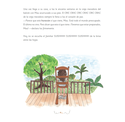 Una nota de la autora y/o la ilustradora hubiera ayudado a brindar un poco de contexto a la historia y para los lectores no familiarizados con huracanes o el Huracán María. Pero también puede verse como una historia que puede plasmarse y presentarse en relación a otros huracanes, desastres naturales y experiencias.